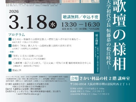 シンポジウム「地方明星派歌壇の様相―山陰『明星』歌人資料と大阪市立大学初代学長恒藤恭の松江時代―」を3月18日(水)に開催します