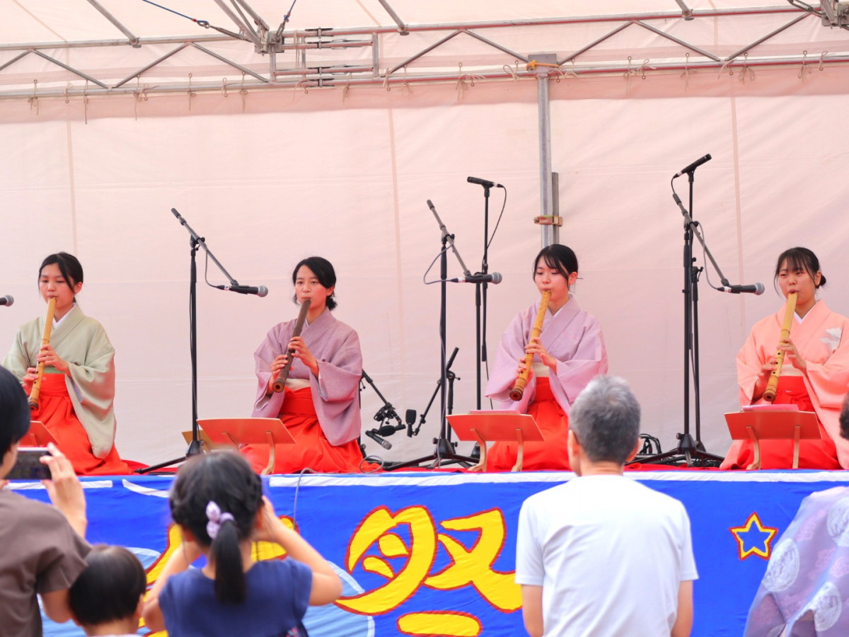 外部から生田流筝曲の先生をお招きし、指導していただいています。「さくらさくら」「六段の調」などの古典から、馴染みのあるポップスなど部員が選んだ曲を練習しています。創部したばかりですが、飛鳥祭では尺八部との合奏にも挑戦しました。音楽を通して、日本文化に触れてみませんか?