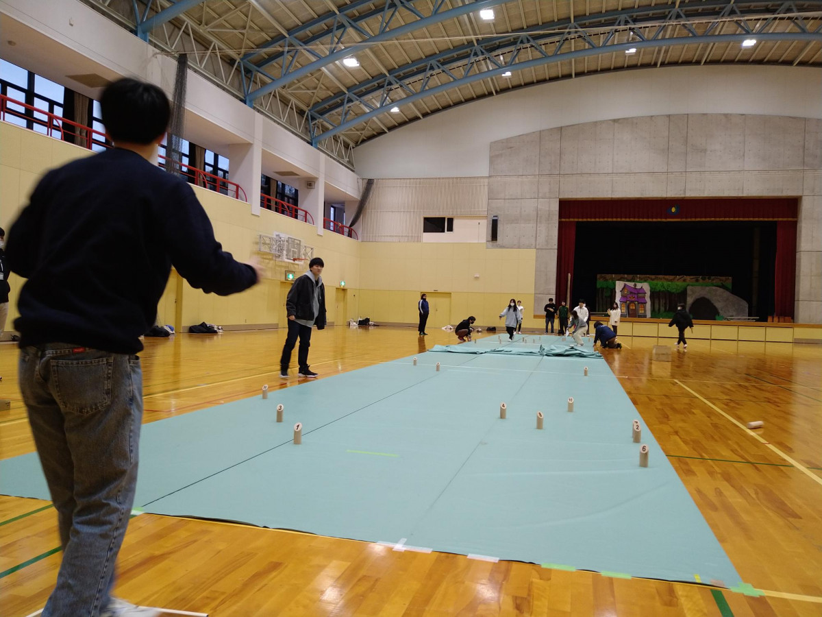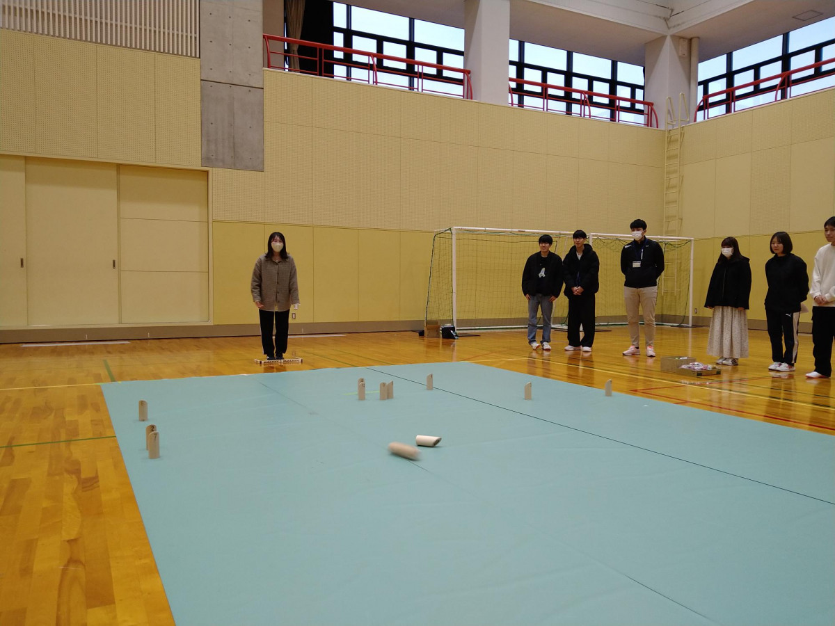 月に2回程、体育館でモルックをしています。モルックは、北欧フィンランド発祥のスポーツで、ルールもゲーム自体も簡単で、誰でも気軽に楽しむことが出来ます。ゲームはとても盛り上がり、楽しい雰囲気で取り組んでいます!