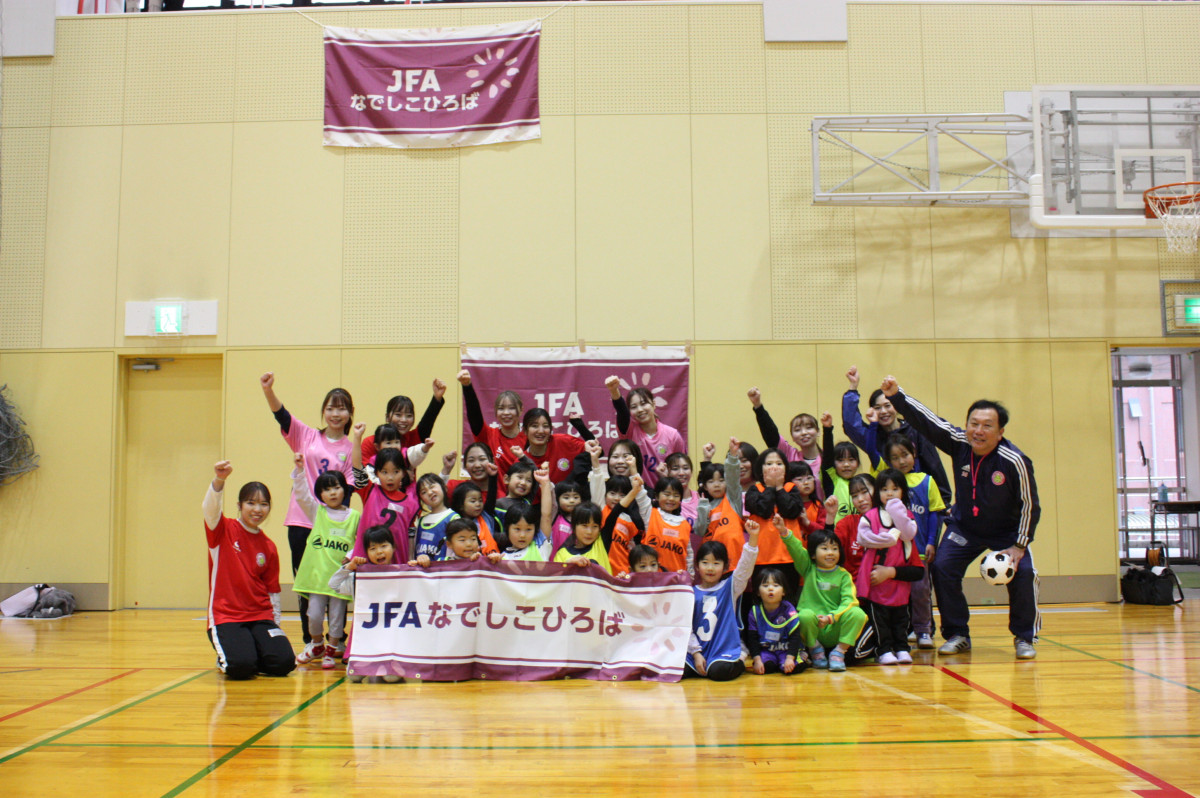 | 活動内容 | 運動好きな子どもと、運動指導の得意な学生を沢山増やし、地域に貢献したいとの思いから「JFAなでしこひろば」をスタートし、2023年の10月より月1回のペースで開催しています。対象は9歳以下の女の子で、サッカーに限らず、様々な運動遊びを取り入れたプログラムを考え実践しています。 ※JFA:(公財)日本サッカー協会 |